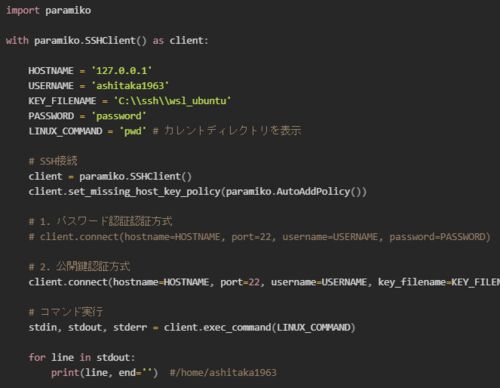 はじめに 前回はRloginを使ってSSH接続しましたが、PythonのParamikoライブラリを使えばコードからも同じことが出来ることを知ったのでやってみる。 目次 はじめに 目次 本記事のゴール 環境 利用ライブラリ 事前準備 Paramikoのインストール コード おわり…